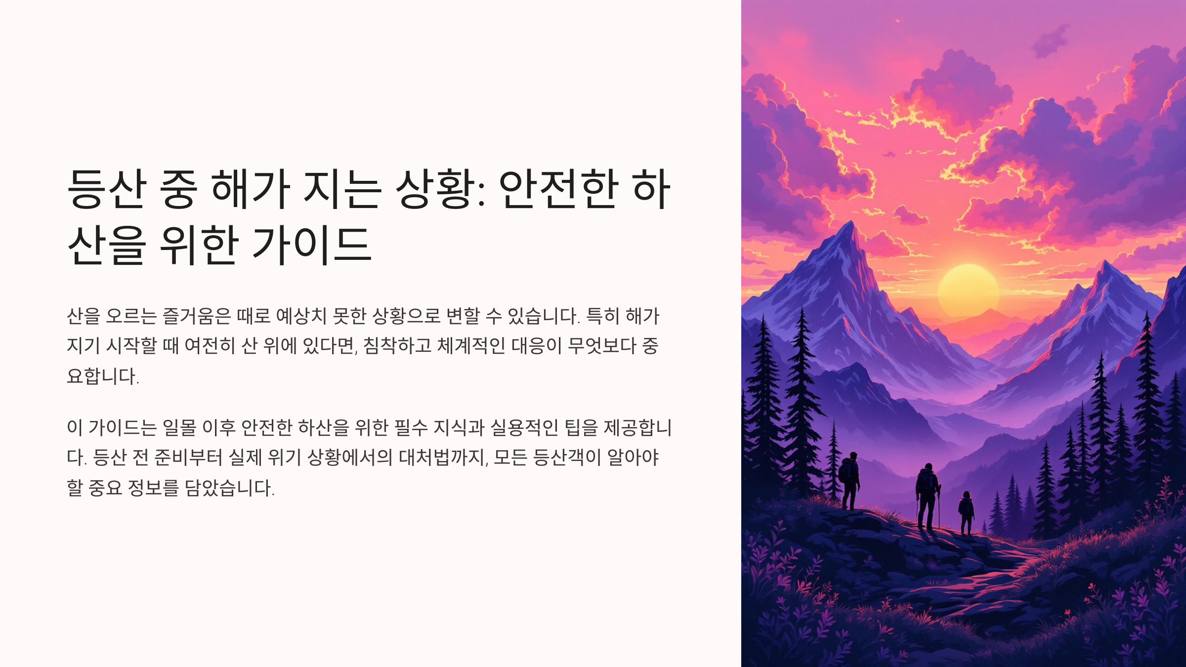 등산하다 보면 예기치 않게 해가 떨어지는 상황이 생길 수 있어요. 특히 겨울이나 초가을엔 일몰 시간이 생각보다 빨라서, 계획보다 조금만 늦어도 순식간에 어둠이 깔려버리죠.