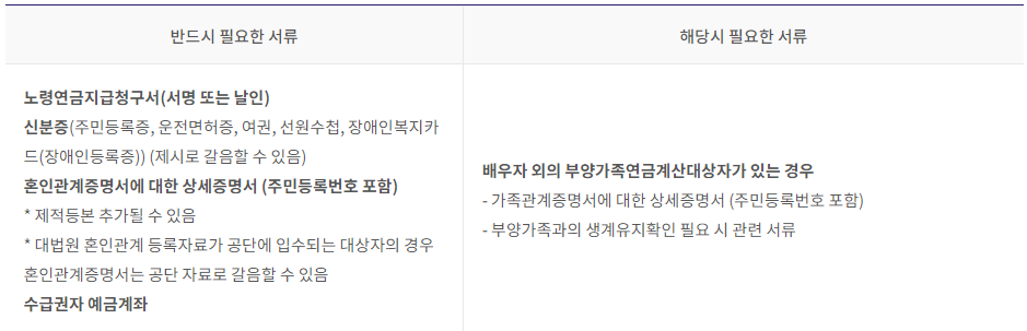 청구 사이트는 국민연금공단 전국 어느 지점에서나 가능하며, 홈페이지를 통해 방문청구, 방문연금서비스, 우편, 팩스, 인터넷 청구 등을 통해 신청할 수 있으므로 작성서류는 다음과 같습니다.