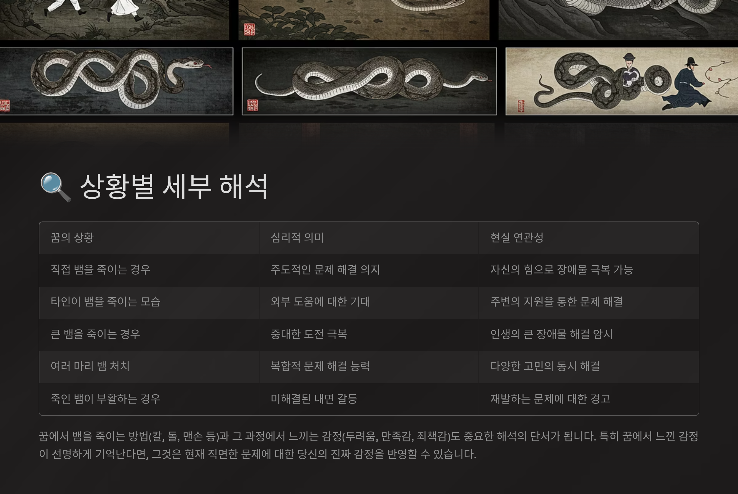 🔍 상황별 뱀 죽이기 꿈 해석표