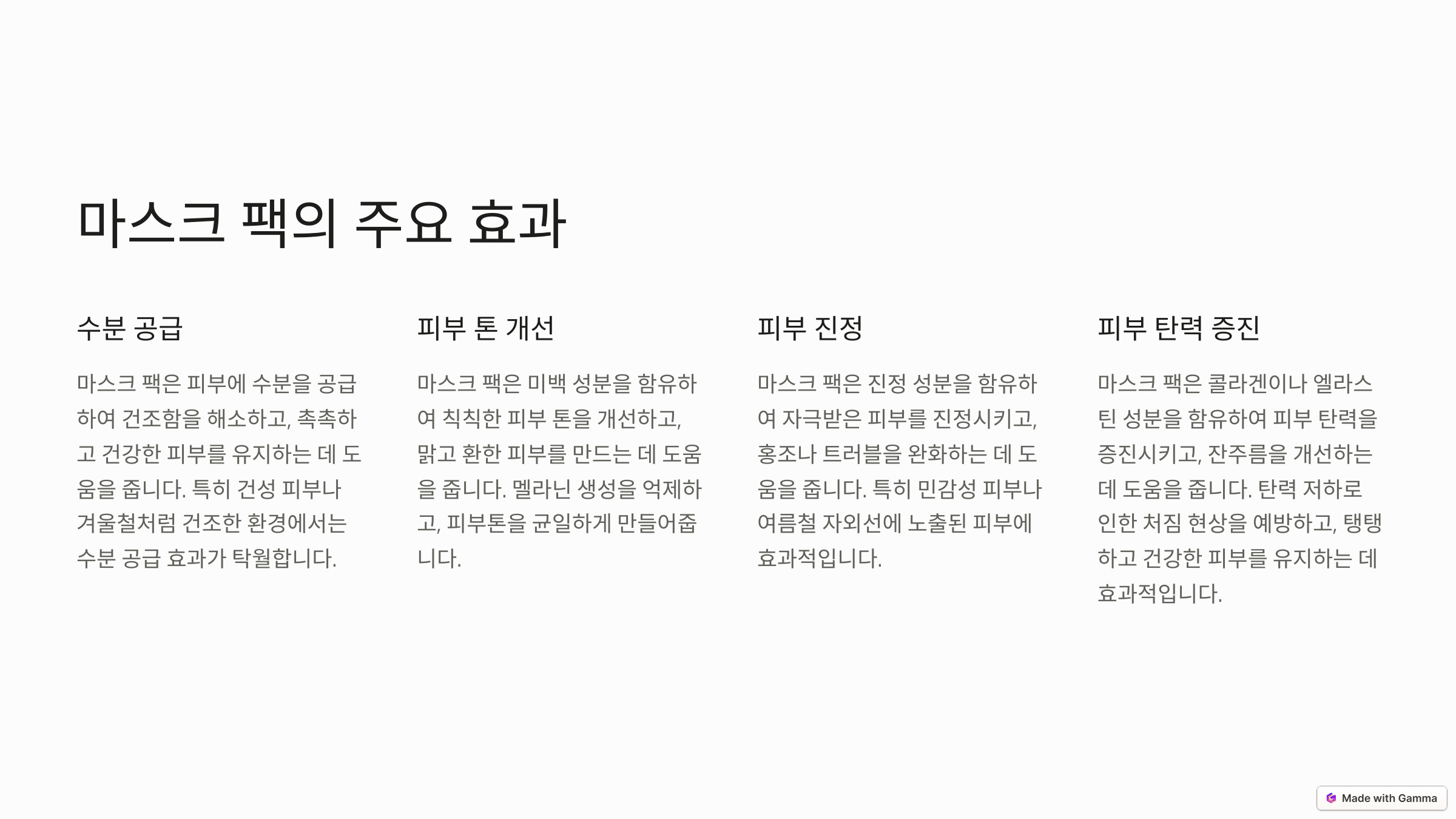 마스크 팩의 주요 효과