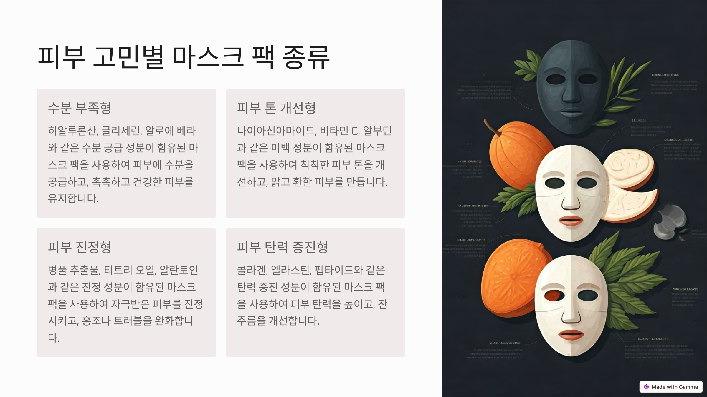 피부 고민별 마스크 팩 종류
