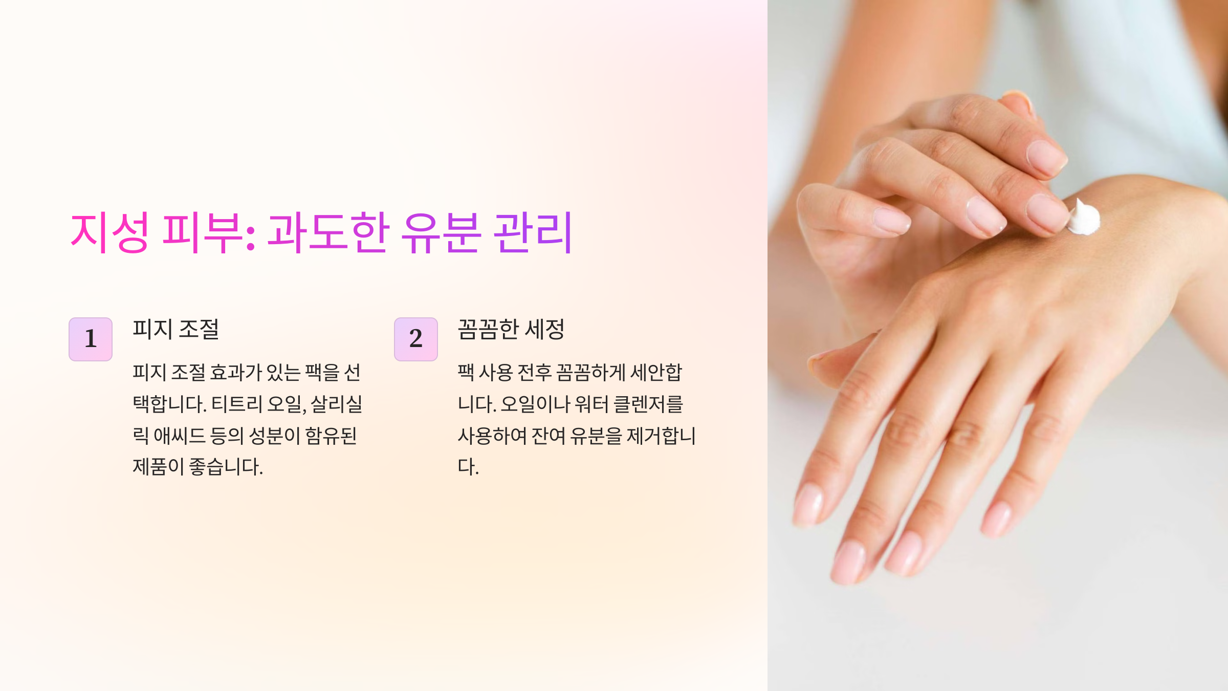 팩을 너무 자주 사용하면 오히려 피지선이 자극받아 더 많은 피지를 분비할 수 있으니, 주 2~3회를 넘지 않도록 주의하세요. 적당한 빈도로 꾸준히 관리하는 것이 가장 중요하답니다.
