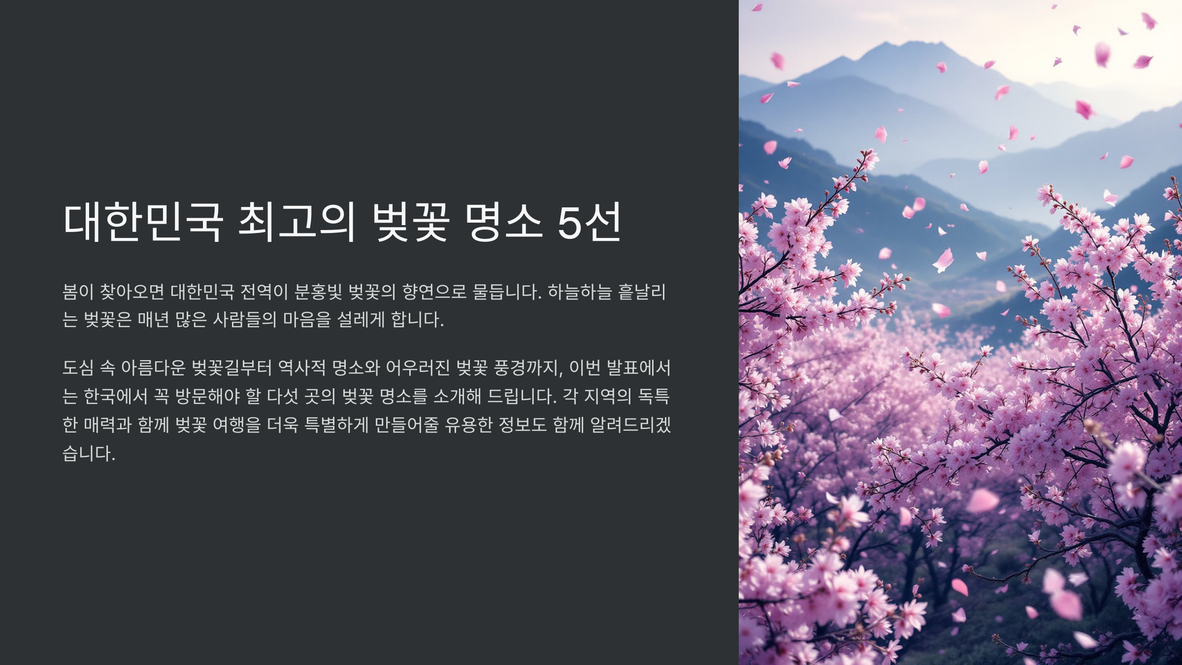 오늘은 전국에서 아이와 함께 벚꽃을 보기에 가장 좋은 장소 다섯 곳을 소개해드릴게요! 접근성부터 화장실, 놀이시설, 주차공간, 간식거리까지 꼼꼼히 따져봤어요. 이 리스트 하나면 올봄 벚꽃 나들이는 걱정 끝이에요. 🌸