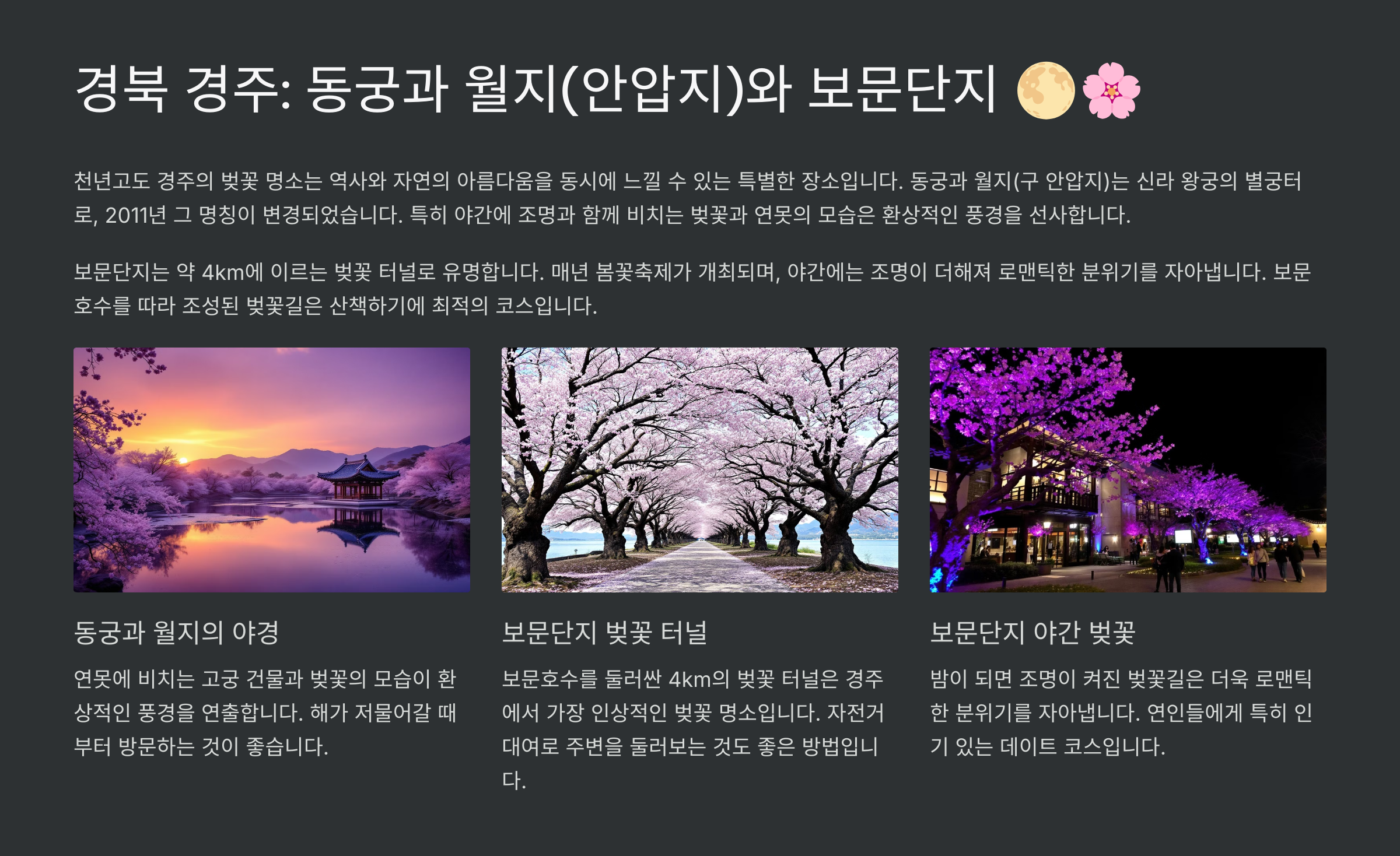경주 보문단지는 드라이브 코스와 산책로, 놀이시설까지 모두 갖춘 종합 나들이 장소예요. 특히 벚꽃이 절정일 때는 도로를 따라 벚꽃터널이 형성돼 자동차 안에서만 봐도 입이 벌어질 정도로 아름다워요. 가족 단위로 가장 인기 많은 벚꽃 명소 중 하나예요.