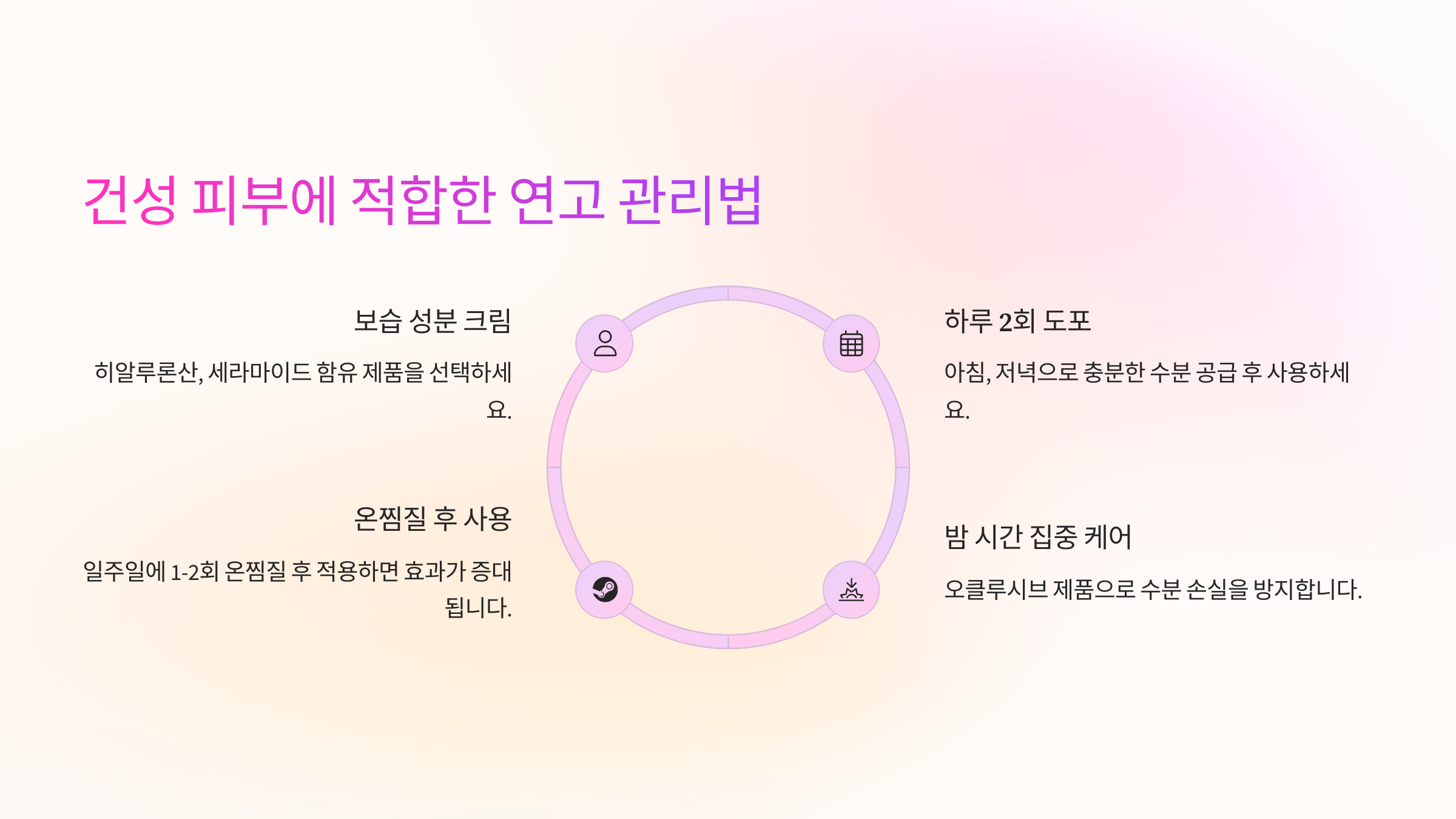 건성 피부는 각질이 많아 흉터 연고가 제대로 흡수되지 않는 경우가 많아요. 이럴 땐 스크럽보다는 보습력 높은 수분 크림이나 마스크팩으로 먼저 피부를 부드럽게 만들어주는 게 좋아요. 그 후 연고를 얇게 바르는 게 핵심이에요.