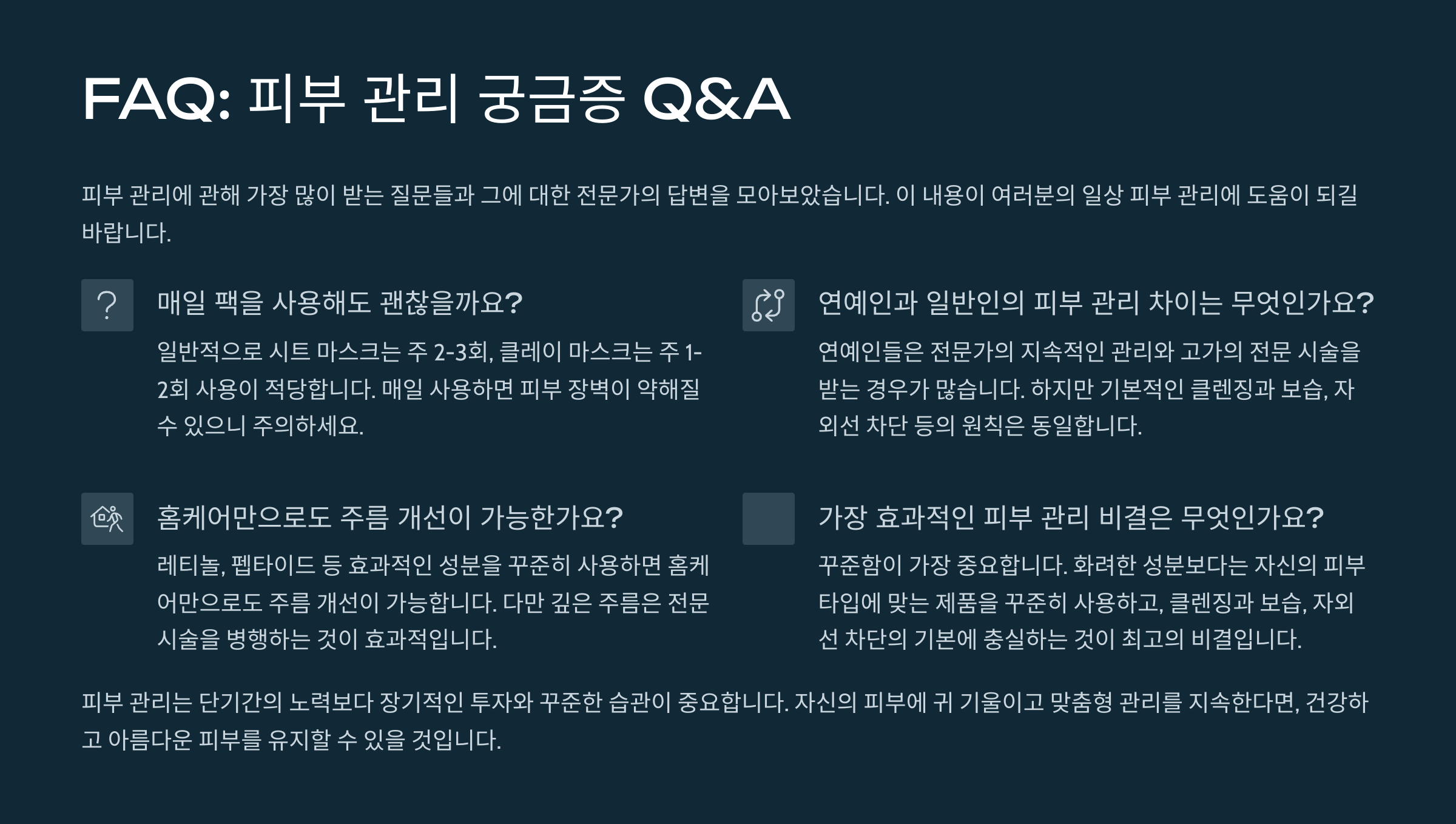 결국 자신의 라이프스타일과 예산에 맞는 선택을 하는 게 가장 중요해요. 무리하지 않는 선에서 꾸준히 할 수 있는 방법을 찾는 것이 피부 건강의 핵심이라고 생각해요! 💫
