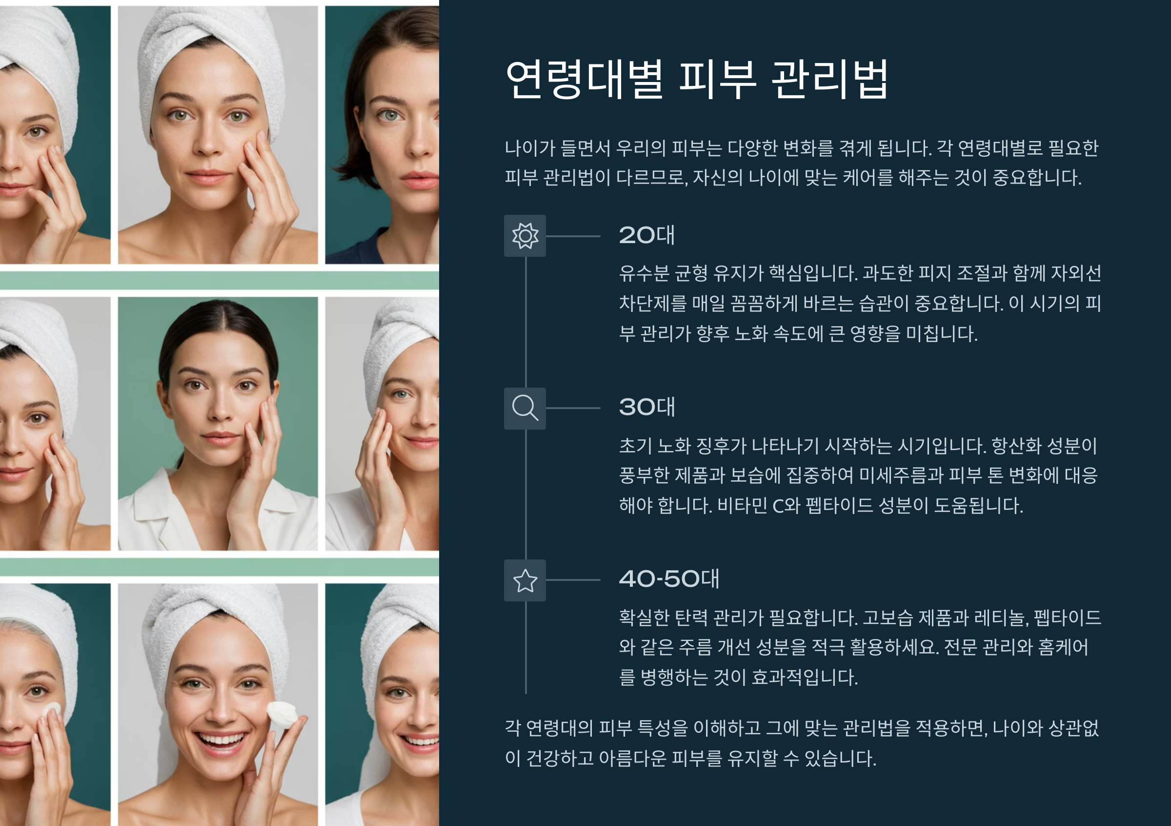 연령대에 맞는 관리법을 찾는 것이 정말 중요해요. 자신의 나이에 맞지 않는 과도한 관리는 오히려 피부에 부담을 줄 수 있으니까 단계적으로 접근하는 게 좋아요! 🎂