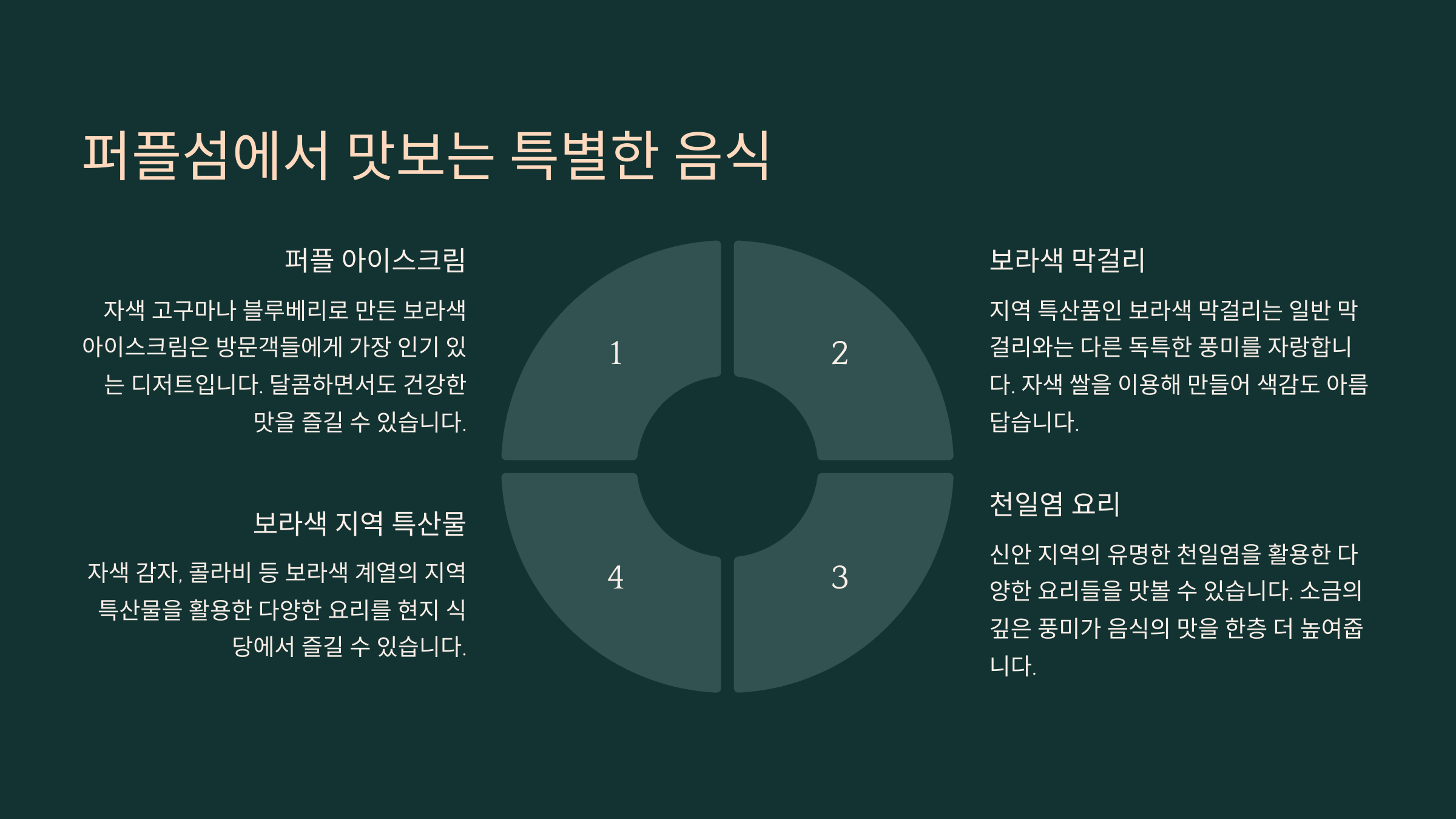 | 퍼플 아이스크림 🍦 | 자색 고구마 베이스의 부드러운 아이스크림 |