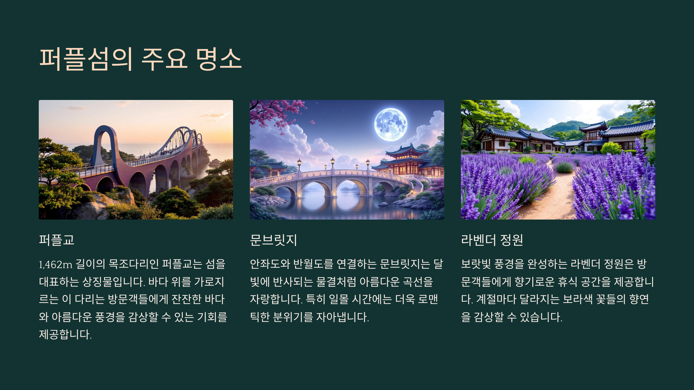 | 퍼플교 🌉 | 반월도와 박지도를 연결하는 1.5km 길이의 보라색 다리 |