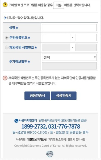 1. 대법원 전자가족관계등록시스템에 접속하면 공인인증서를 이용해 로그인할 수 있습니다.