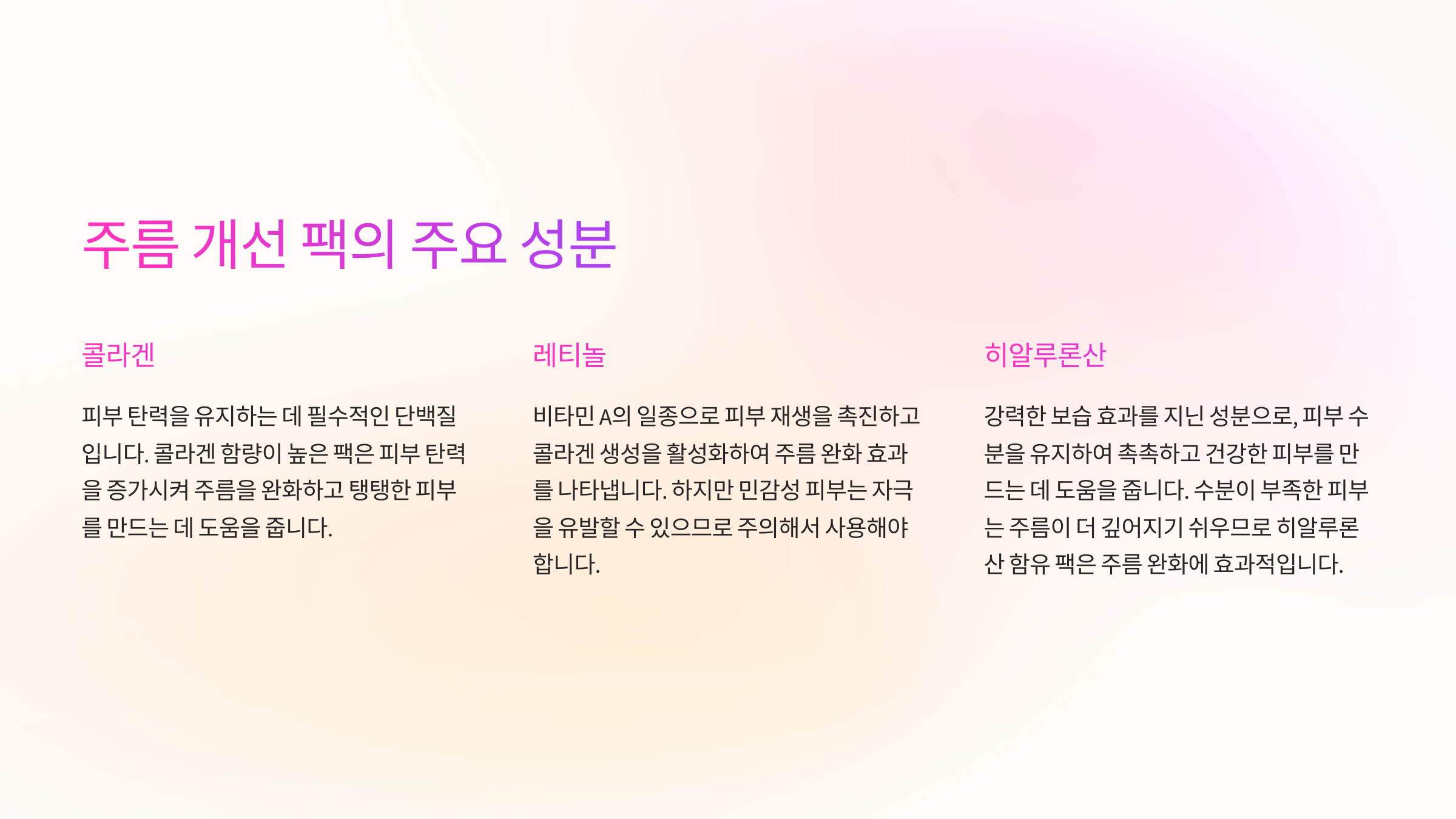 주름 개선 팩의 주요 성분