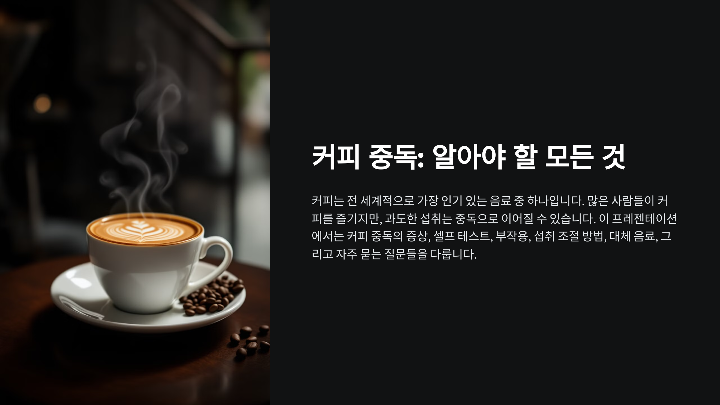 커피는 적당히 마시면 건강에 긍정적인 효과를 주지만, 지나치면 부작용을 초래할 수 있어요. 자신이 커피에 얼마나 의존하고 있는지 체크해 보세요! 😊