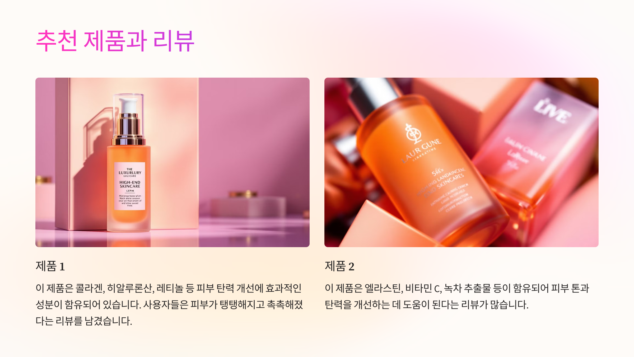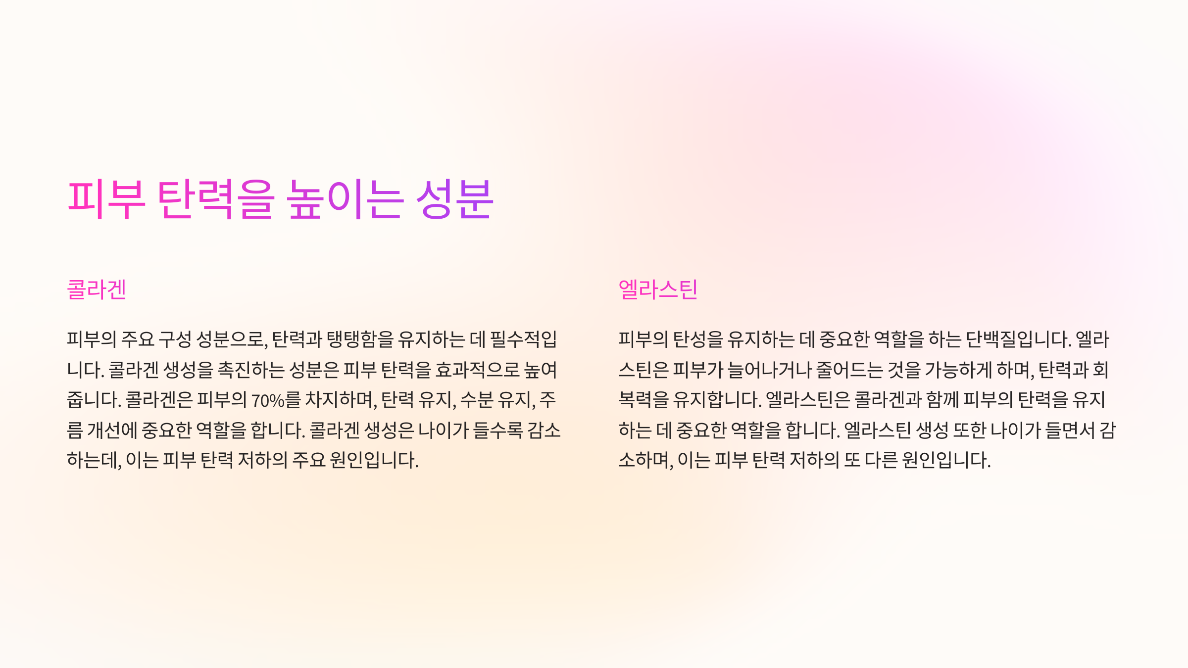 피부 탄력을 되찾기 위해 중요한 건 올바른 성분이 함유된 제품을 고르고, 이를 꾸준히 사용하는 습관을 만드는 거예요. 아래에서는 탄력을 잃게 되는 이유부터 어떤 제품을 선택해야 하는지, 그리고 구체적인 관리 방법까지 모두 알려드릴게요!