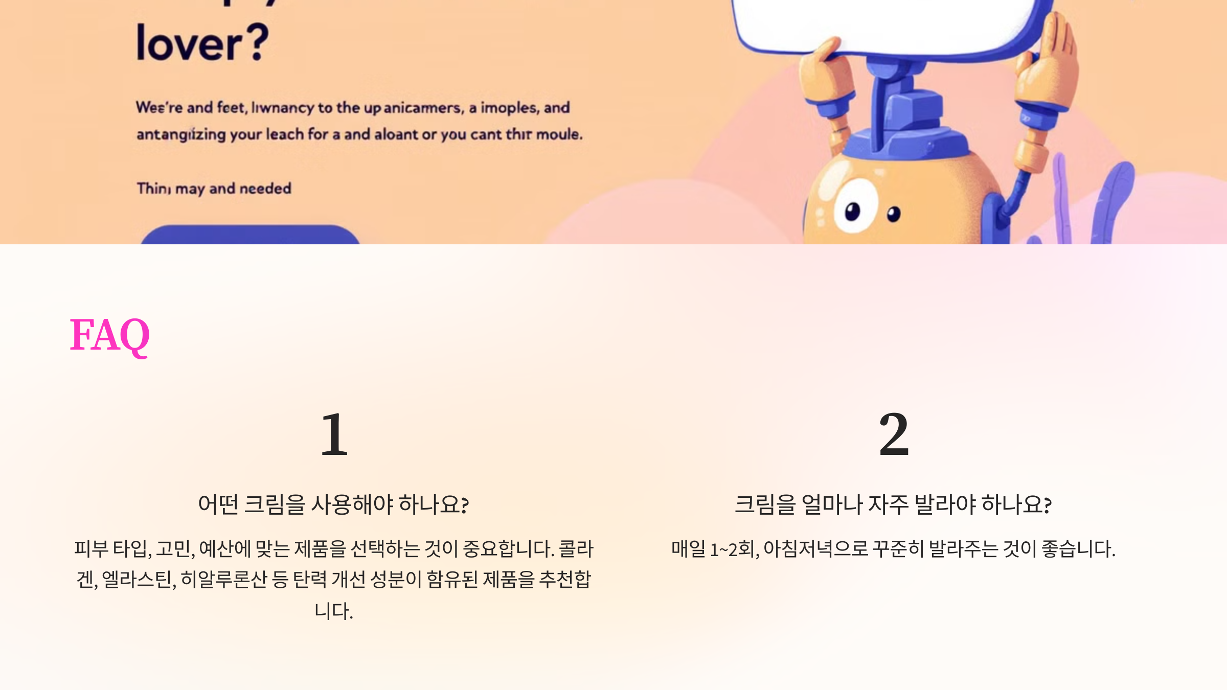 A4. 탄력 크림은 도움을 줄 수 있지만, 건강한 생활 습관과 병행해야 더 좋은 효과를 볼 수 있어요. 수면, 식습관, 자외선 차단 등을 함께 관리하세요.