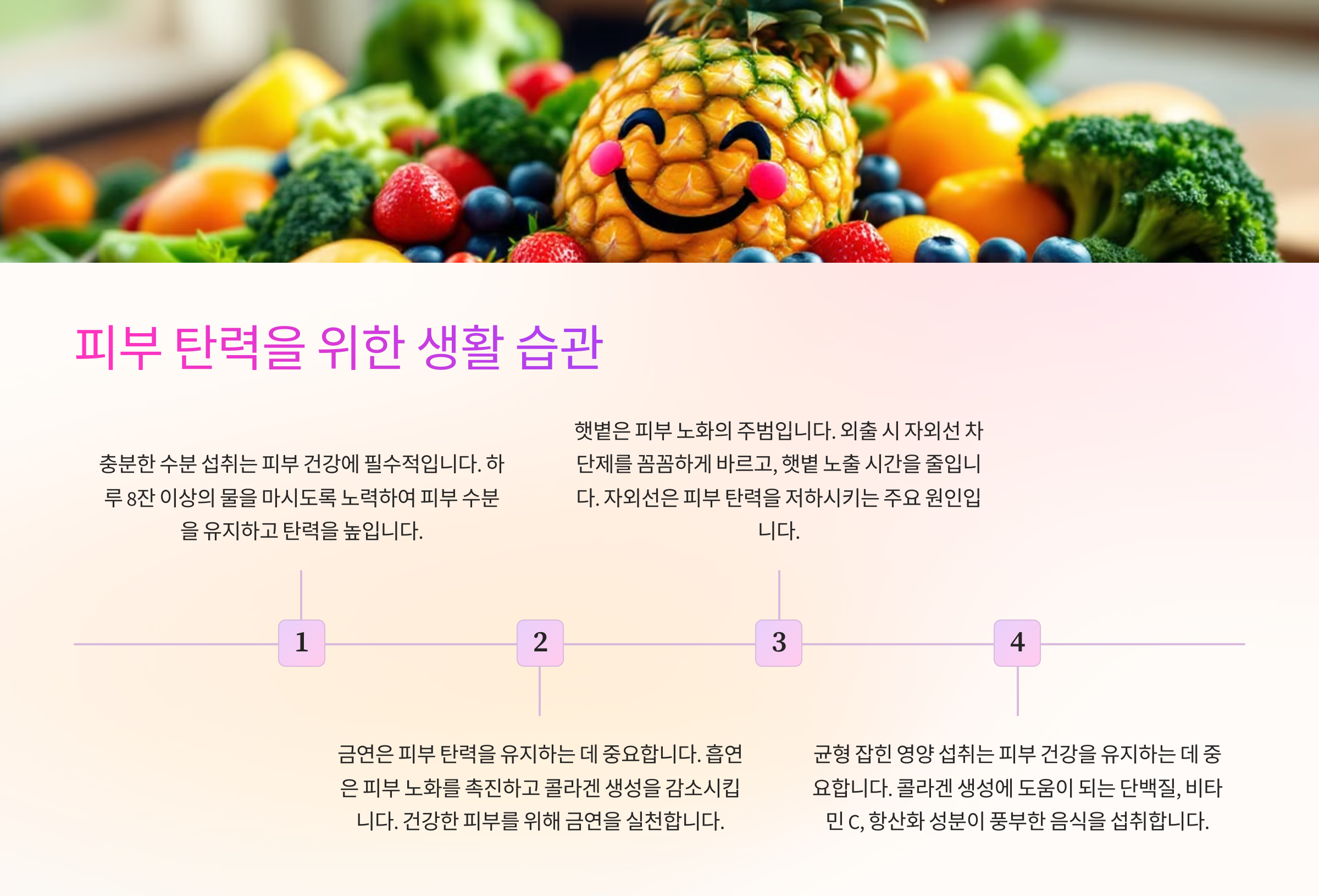 크림 사용과 함께 건강한 생활 습관을 유지하는 것이 피부 탄력에 큰 영향을 미쳐요. 아무리 좋은 제품을 사용하더라도 잘못된 습관을 계속 유지하면 원하는 효과를 얻기 힘들 수 있어요.