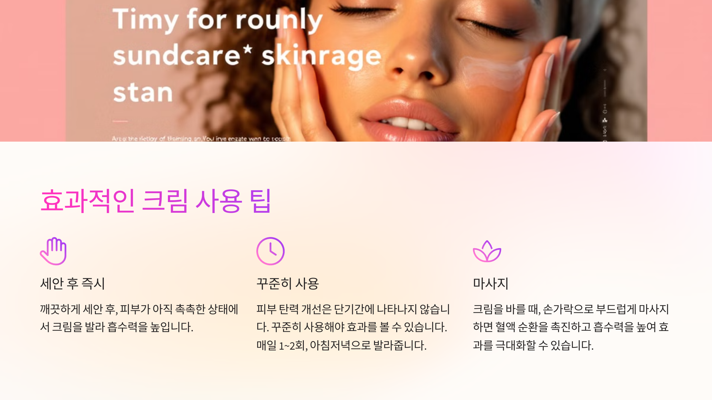 아무리 좋은 크림을 사용하더라도 바르는 방법이 올바르지 않다면 효과를 보기가 어려울 수 있어요. 가장 중요한 건 꾸준히 사용하는 습관을 만드는 거예요. 피부는 일정한 관리를 받을 때 더 건강해진답니다.