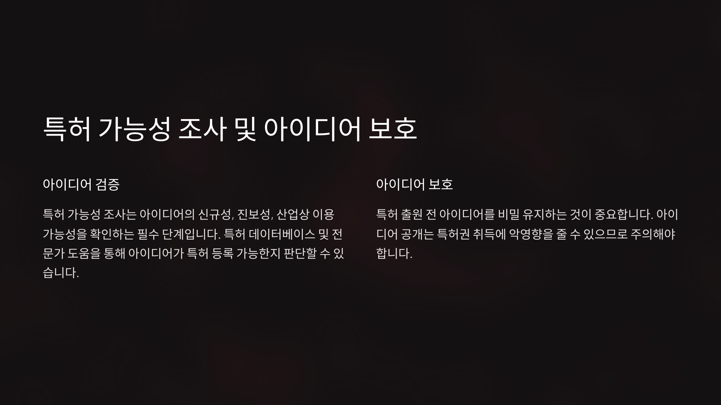 특허 가능성 조사 및 아이디어 보호