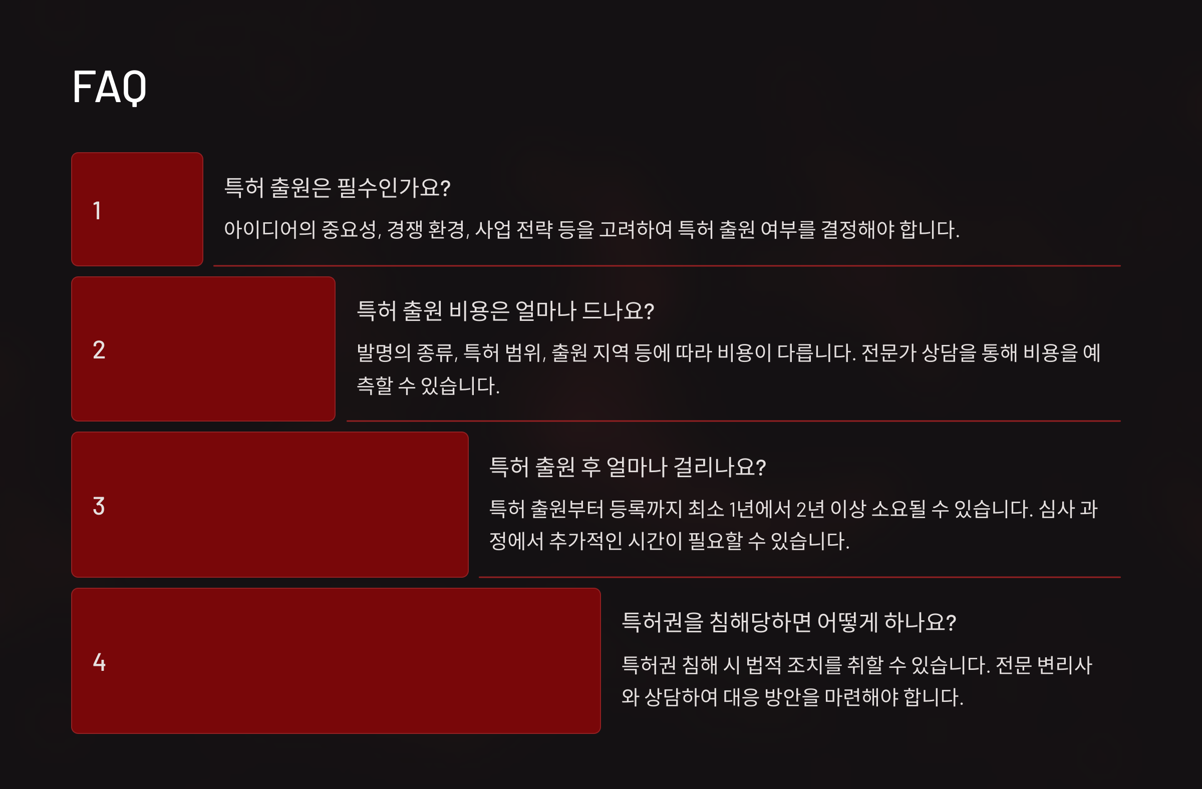 A6. 아이디어만으로는 특허를 받을 수 없으며, 구체적인 구현 방법과 기술적 효과가 명세서에 포함되어야 합니다.