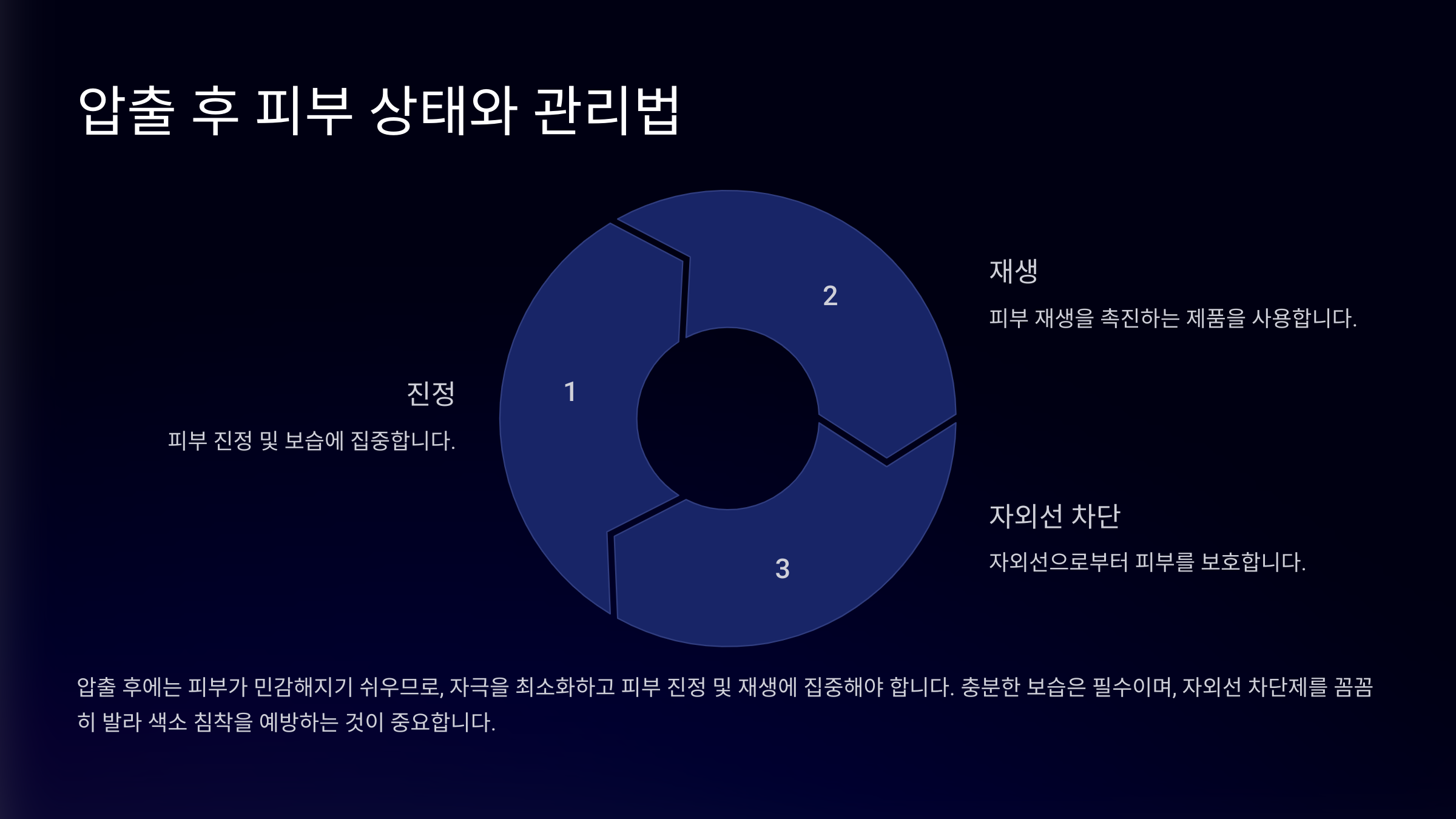 압출 후 며칠 동안은 강한 햇빛 노출을 피하고, 자극이 강한 스킨케어 제품 대신 보습과 진정에 초점을 맞춘 제품을 사용하면 좋아요.