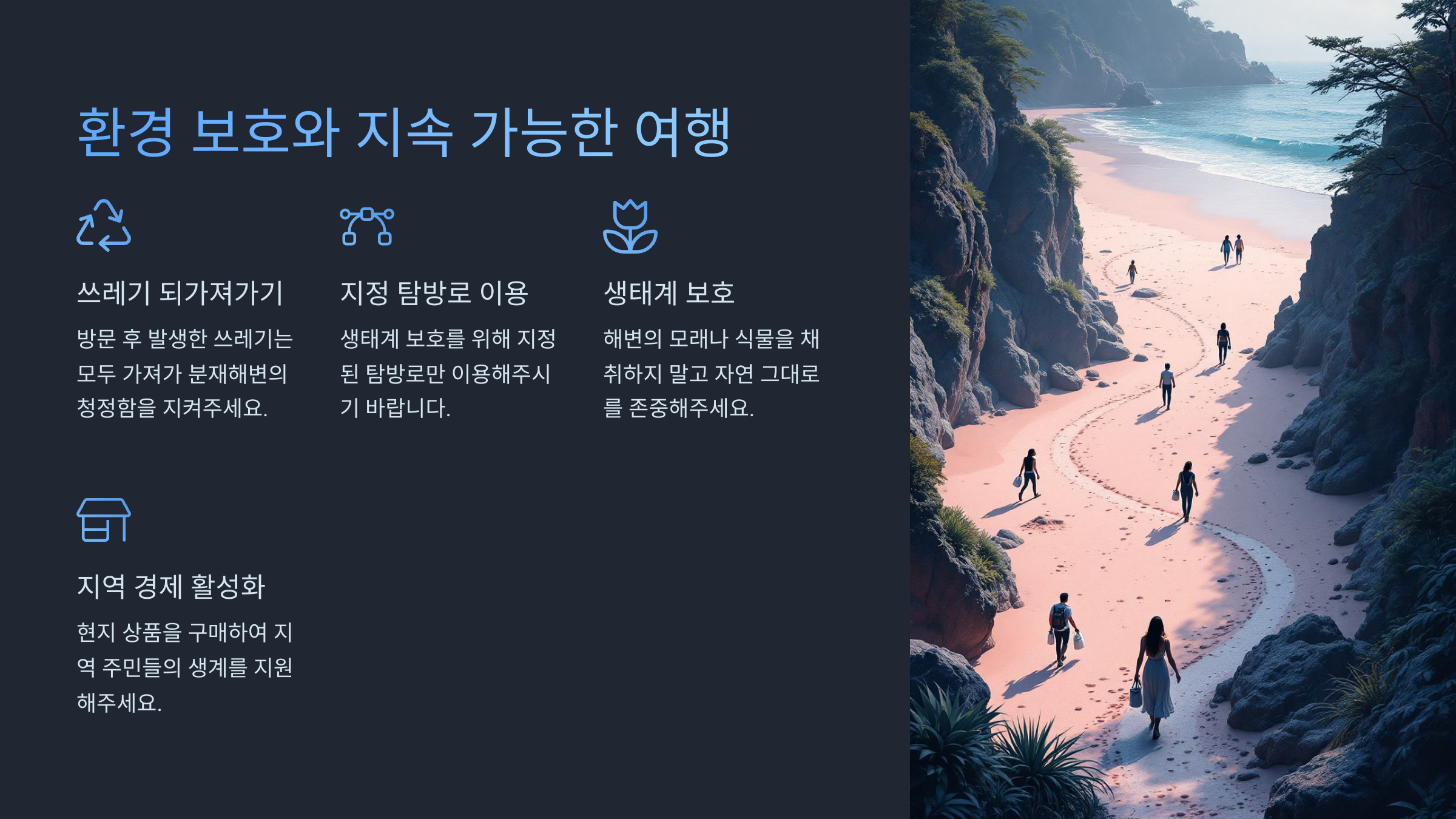 💚 아름다운 신안 분재해변을 오래도록 유지하려면 자연을 보호하는 노력이 필요해요. 많은 관광객들이 방문하는 만큼 환경을 지키는 작은 실천이 중요하답니다! 🌱