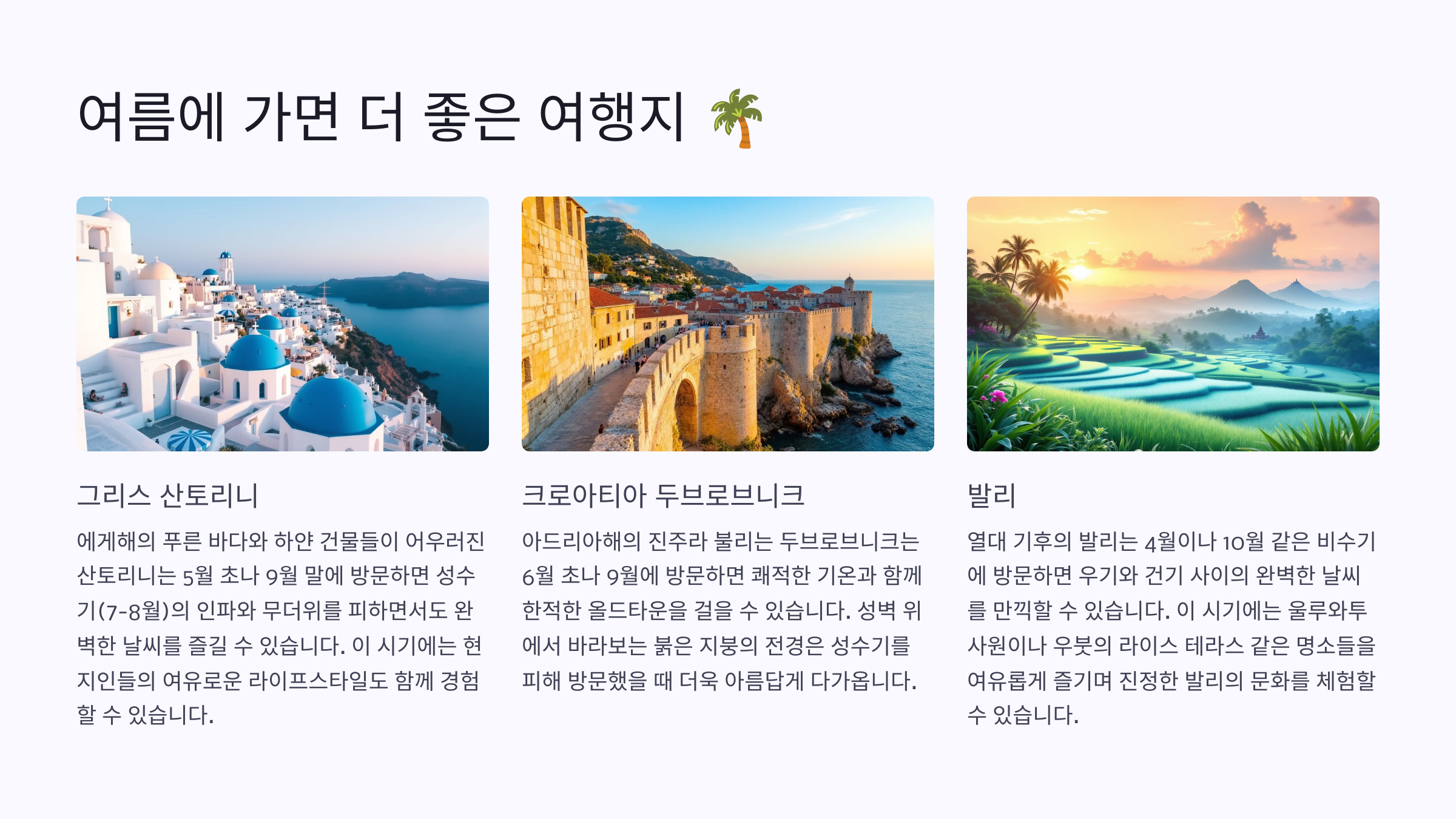 🎿 다음 섹션에서는 여름 비수기 여행지를 소개할게요! 🌴