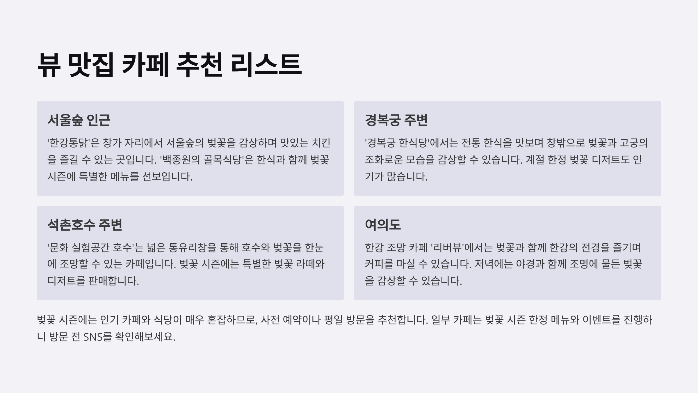 🧭 벚꽃 시즌 똑똑한 팁 요약