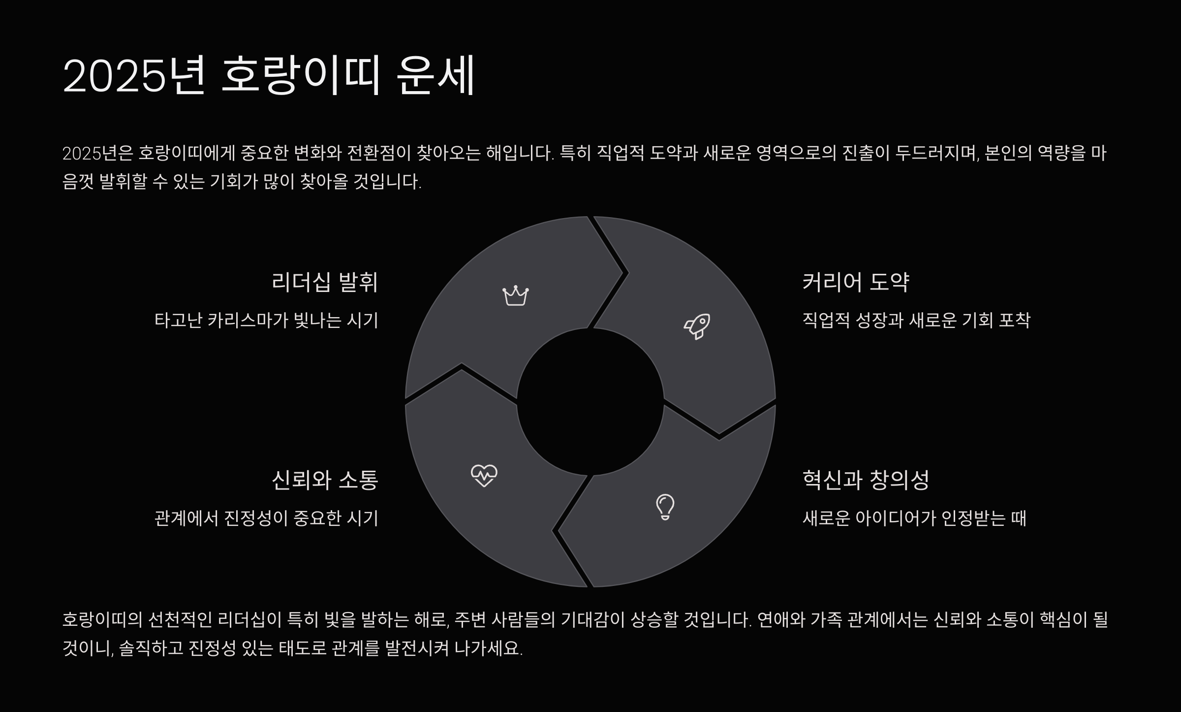 이제 다음 띠, 호랑이띠 운세가 기다리고 있어요! 🐯 2025년 호랑이띠는 어떤 기운을 타고 올지 궁금하지 않나요? 계속 따라와주세요!